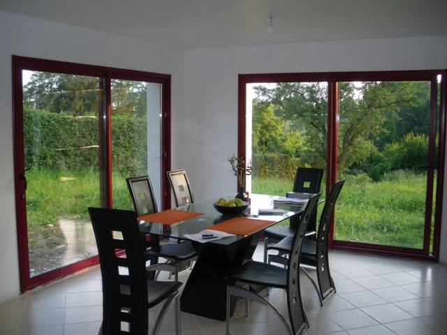 Châssis coulissant en Aluminium à rupture thermique, coloris RAL 3004 Rouge pourpre - double vitrage à isolation thermique renforcée 24 mm -