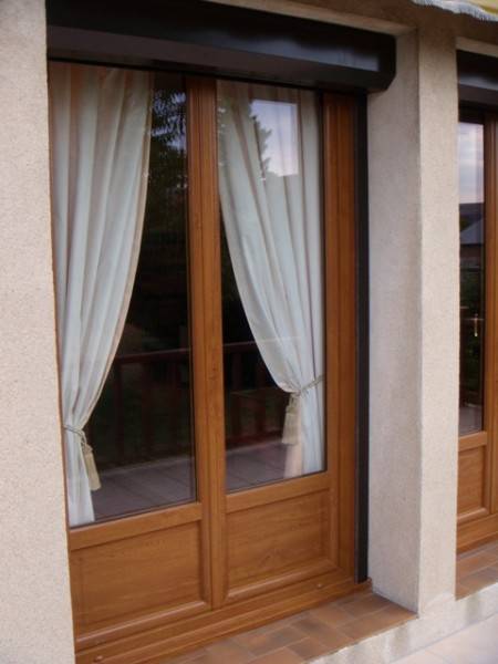 Portes fenêtres PVC plaxées "chêne Doré" 2 faces avec ses poignées laiton